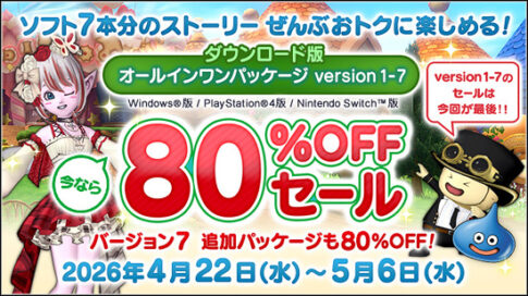 お得な情報・新発売1ヶ月ぶりに「ドラクエ10」80%オフセール が期間限定で開催!w(2026年4月22日〜5月6日)
