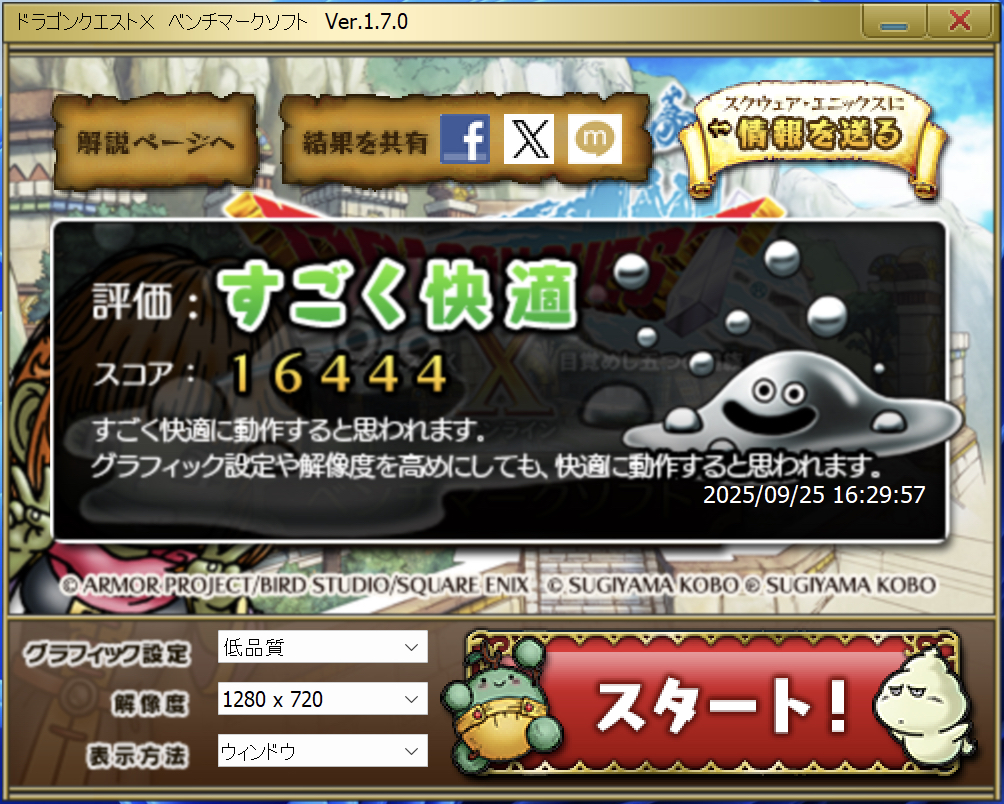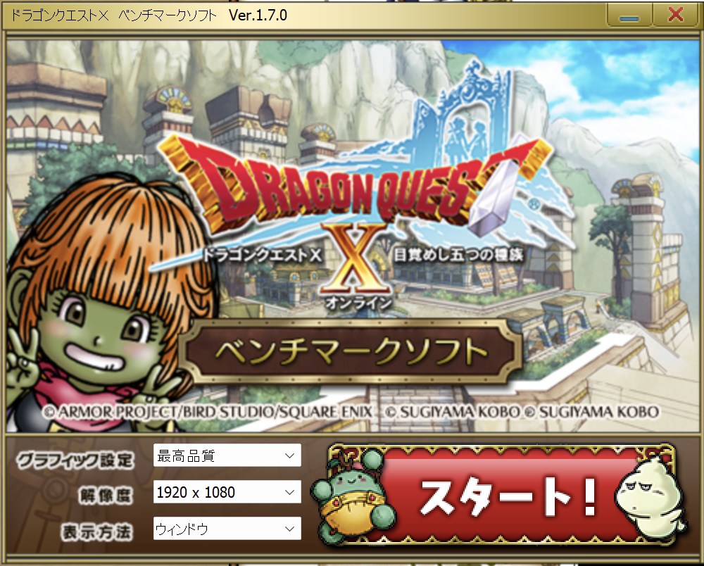 ベンチマークソフトのテスト方法は表示方法はウィンドウ固定で3種のグラフィック設定と2種の解像度で試しました。