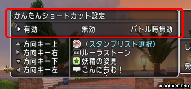 「メインコマンドウィンドウ」→「さくせん」→「いろいろ設定」→「コミュニケーションの設定」→「かんたんショートカット設定」