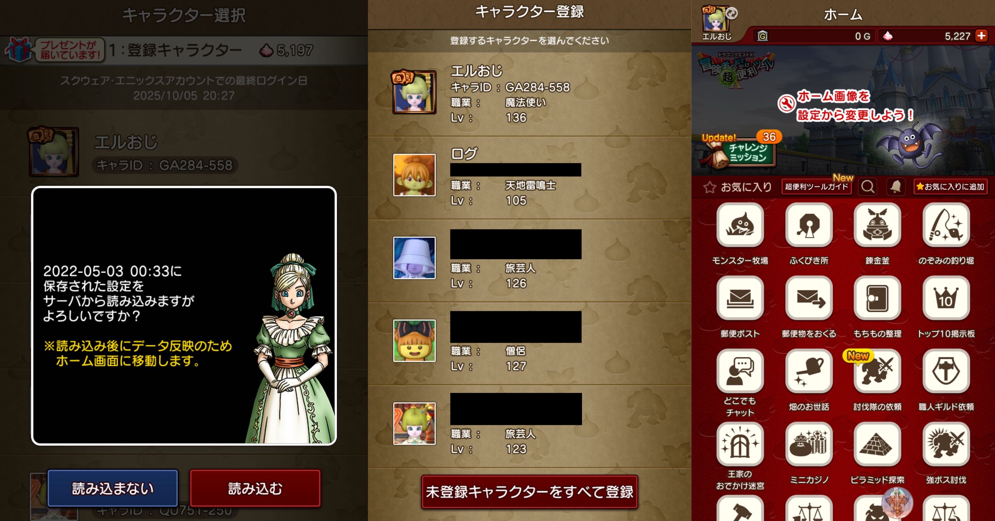 昔は「未登録キャラクターをすべて登録」ってボタンなかった気がする。(1キャラごとにスクエニIDとOTP入力して登録するの面倒だったね)