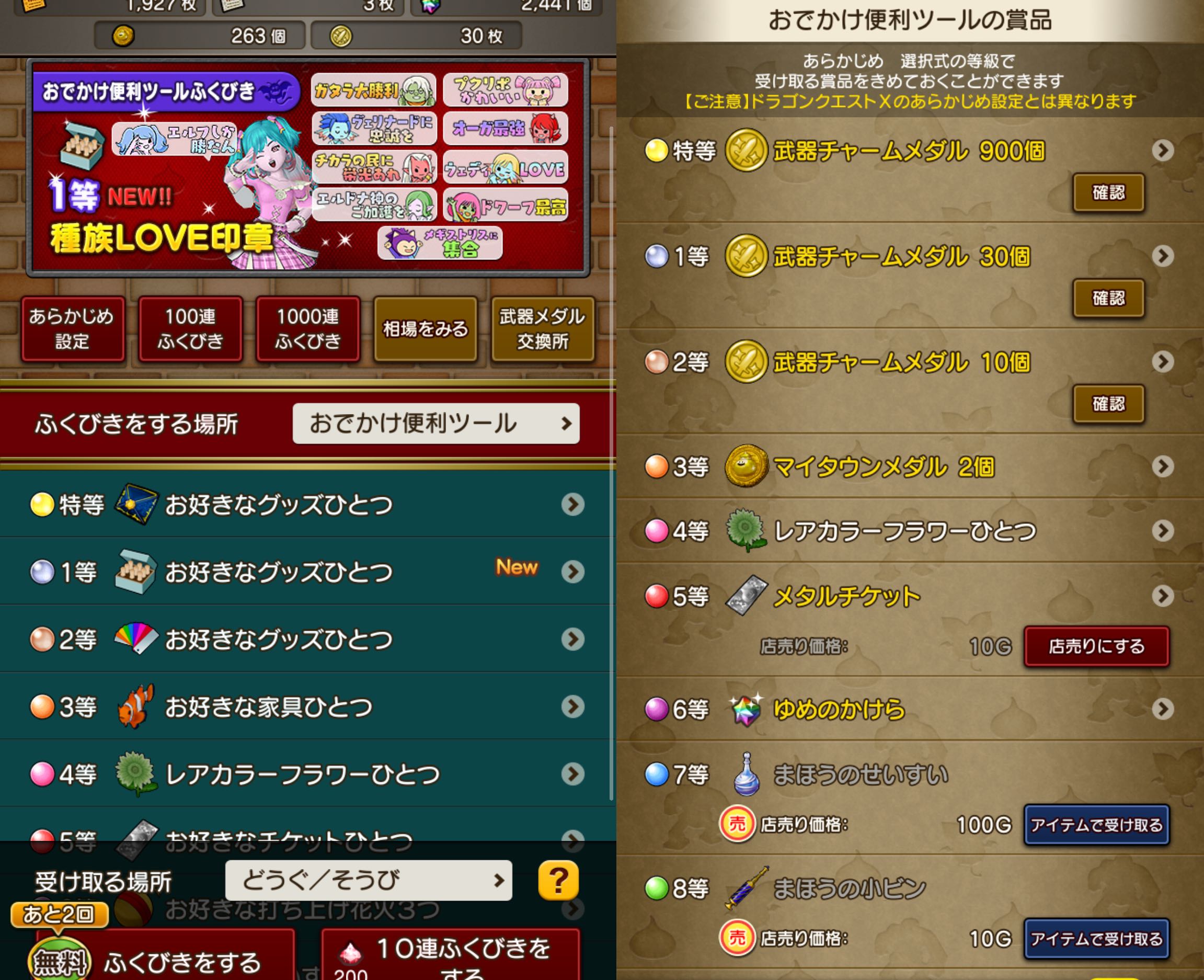 どうやらホーム画面の並びはサーバー保存されているが、ふくびき・釣り・牧場などの選択やチェックマークはローカル保存扱いのようだ。