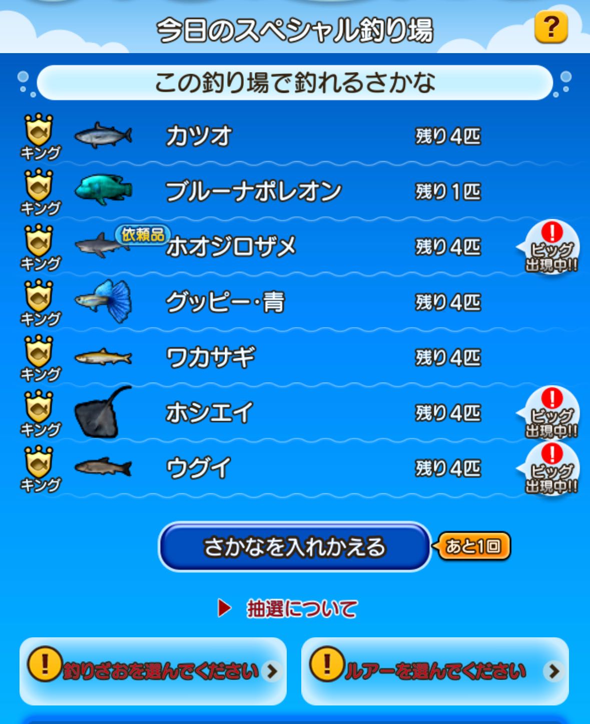 もしや…釣り画面を開いたら釣り竿とルアーの装備がリセットされていた。