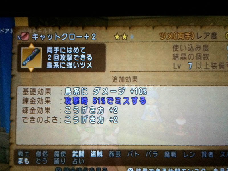 ちなみにこのネタにしかならない効果を2箇所につけたという伝説の武具も存在する。
