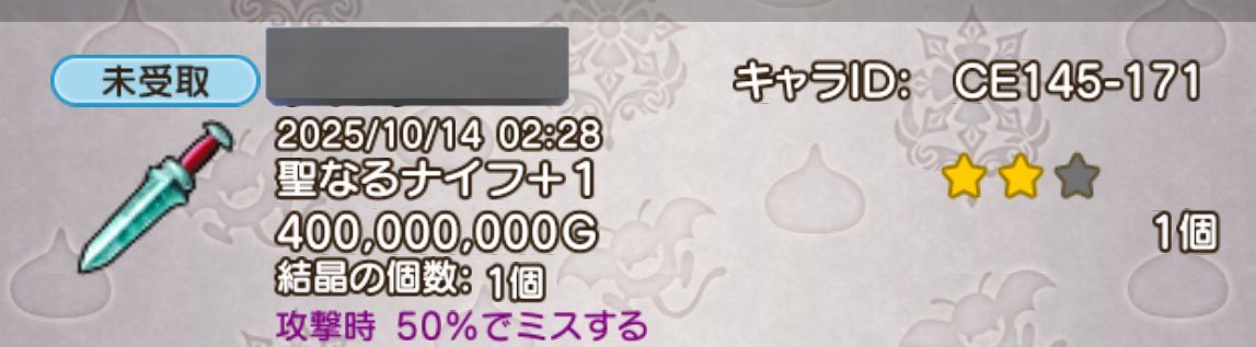 DQ10のサービス開始は2012年8月2日なので、付く可能性があった期間は4週間程度であった。