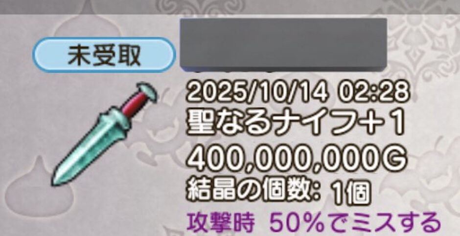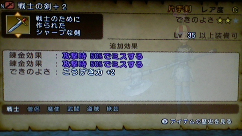 というか、「攻撃時50%でミスする」が付与された武器防具がいまだに未装備の状態でこの世に存在するというのがとても貴重ですね。