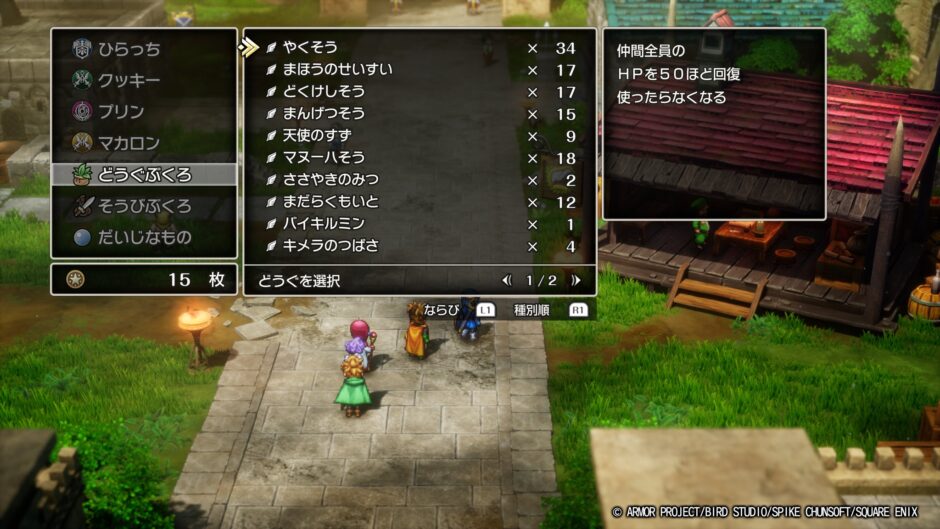 毒消し、満月草、魔法の聖水なども仲間全員でした😱#ドラクエ1アンド2 #ドラゴンクエスト1アンド2 pic.twitter.com/sm900fLPqP