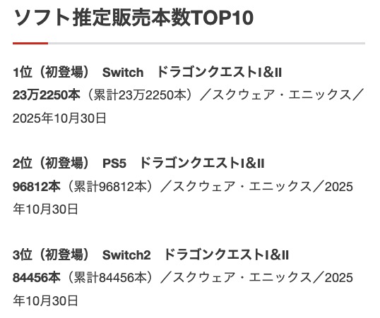 Switch 2全然売ってないのにドラクエは売れるんだな
