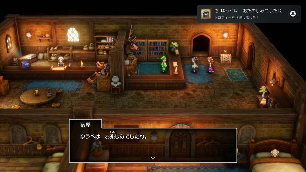 その状態で宿屋に宿泊すると、店主の台詞が「ゆうべは お楽しみでしたね」というものに変更されるのだ。
