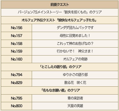 ※オルフェア外伝クエスト「愉快なオルフェアっ子たち」は、「名もなき願い星」の前提クエストです。