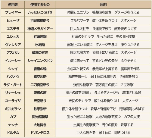 アスタルジア内で特定の条件を満たすとバトル中に一度だけ使用できる特殊な技です。