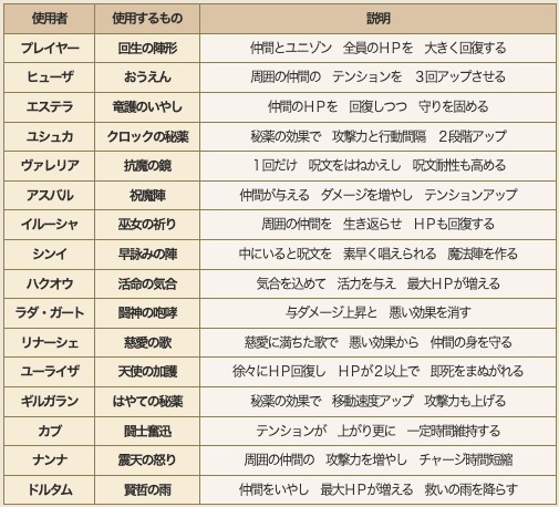 こちらは逆に回復・支援系の特技を使用してくれる。