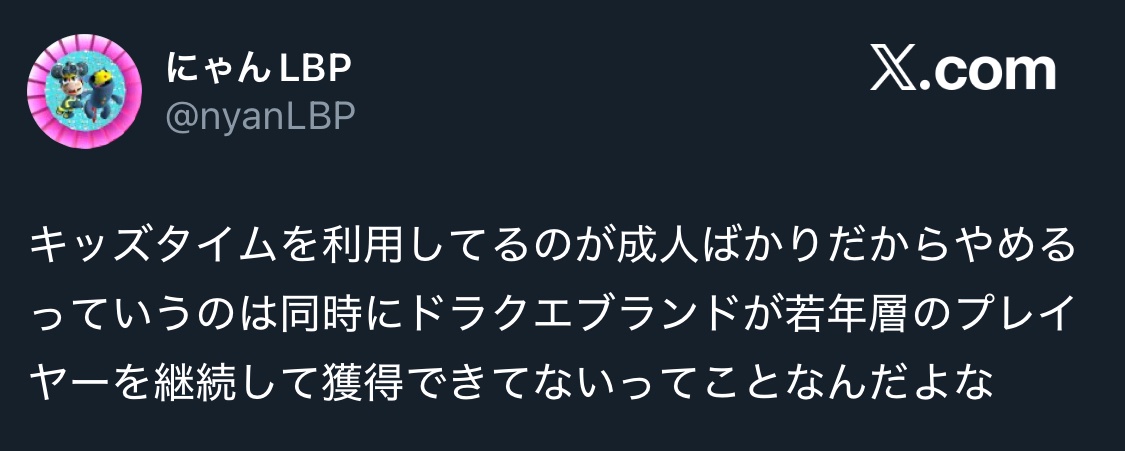 キッズタイム消せばキッズタイムでやってた奴らが月額払うようになると思ってんのかな。このゲーム内容じゃそのまま引退さようならが大半でしょ。