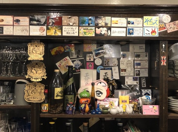 カウンター奥には来店したドラクエ10プレイヤーさんたちの名刺がいっぱいで賑やか!