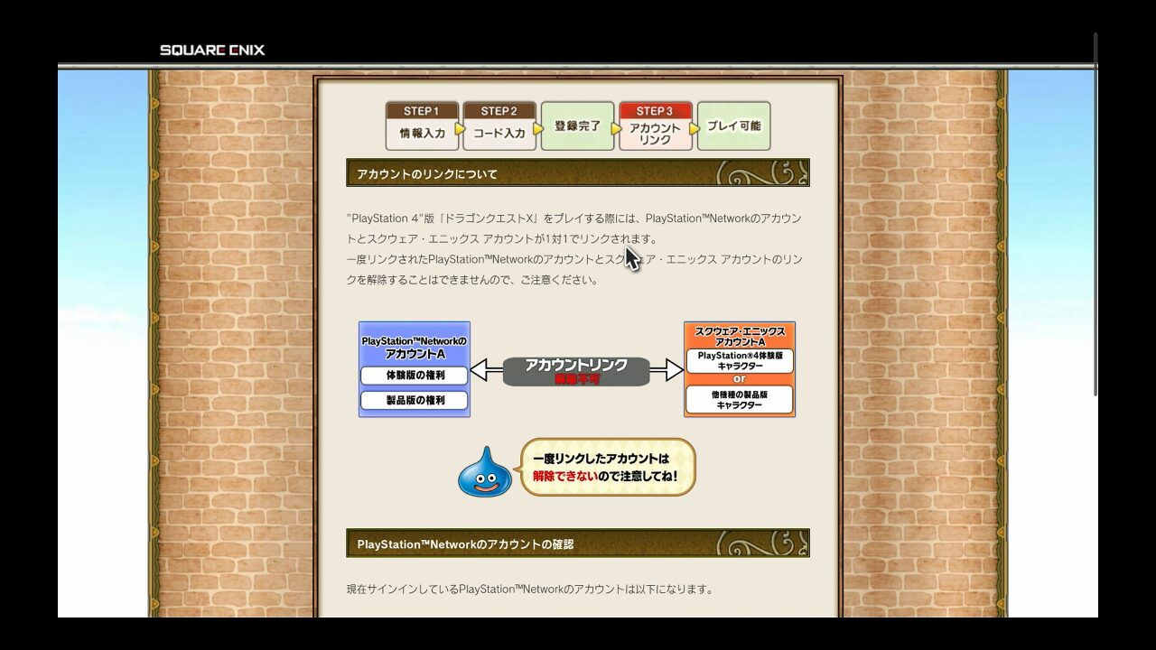 へぇーと思ったのが、スクエニIDとPSIDを一度紐付けするともう2度と解除できないという仕様。