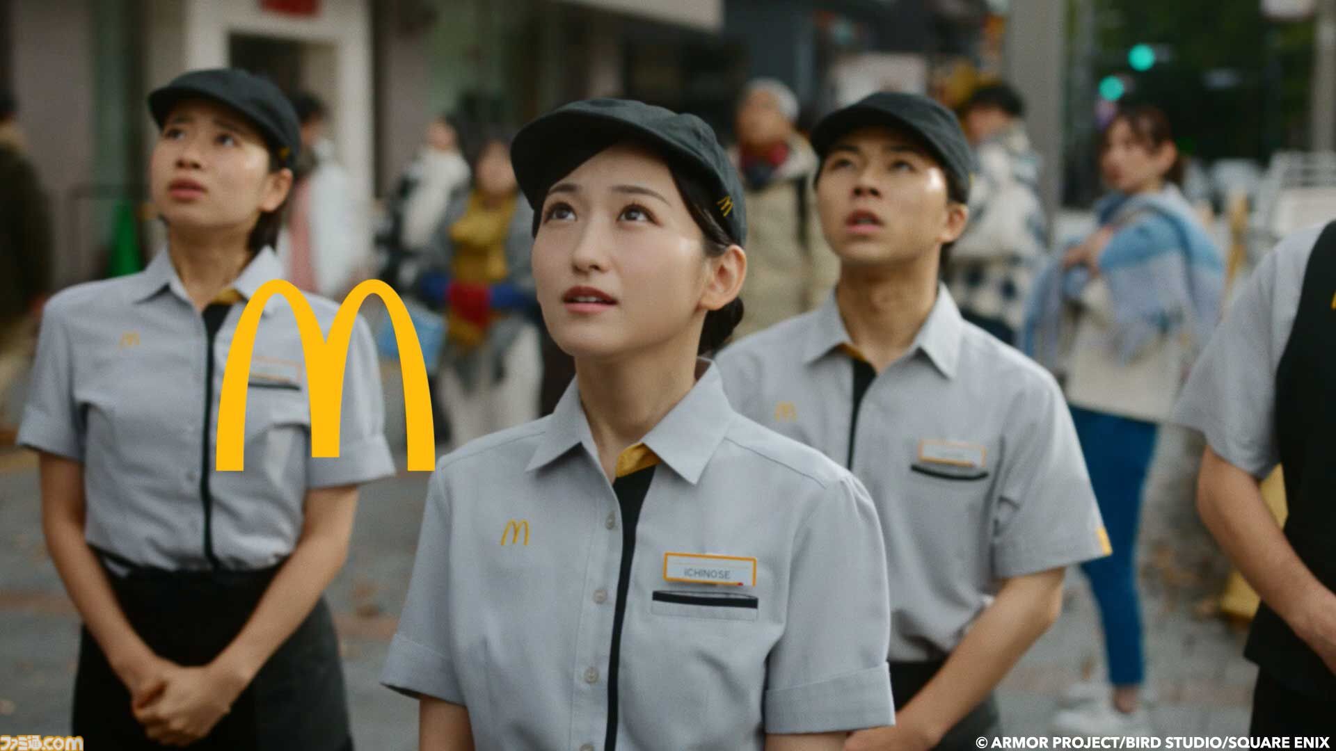 ・内容: 突如街中に現れた『ドラゴンクエスト』のモンスターたち。 乃木坂46の一ノ瀬美空さんが演じるマクドナルドのクルーとその仲間たちは、モンスターたちを迎え入れるため、ドラクエバーガーをつくります。 呪文「メラゾーマ」や、TVCMオリジナルの剣技「ギガうまッシュ」など、ドラクエ×マクドナルドの世界観で、「ドラクエバーガー」の登場を伝えます。