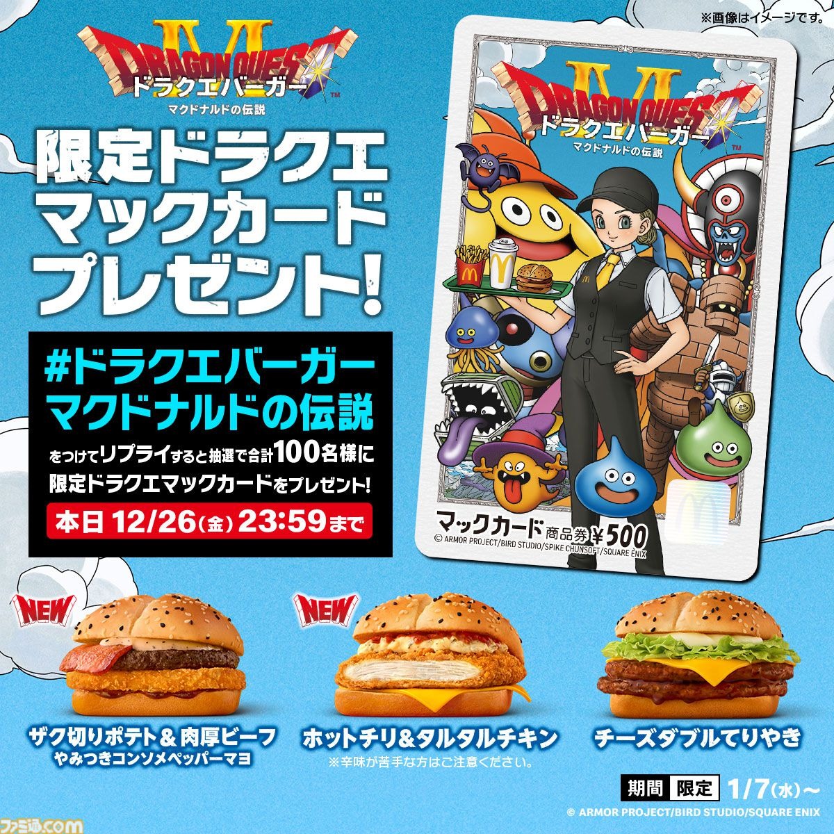 マクドナルドは、『ドラゴンクエスト』シリーズとのコラボメニューを2026年1月7日より販売する。