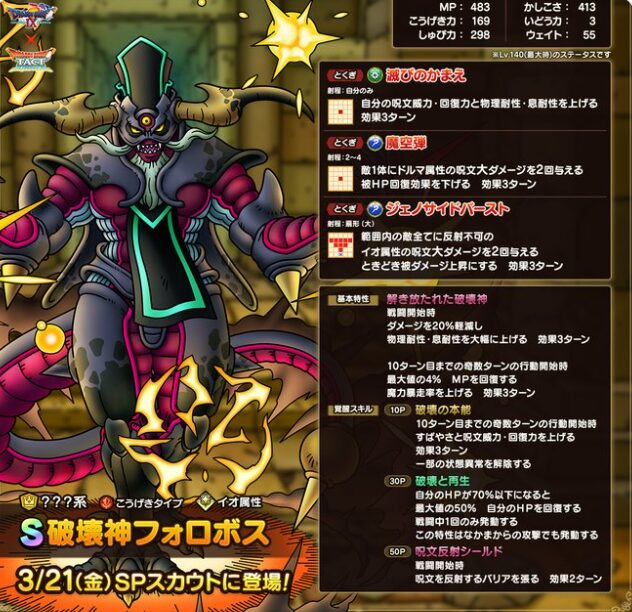 『ドラゴンクエストIX 星空の守り人』に初登場したボスモンスターで、異世界に住まう邪悪な破壊神です!