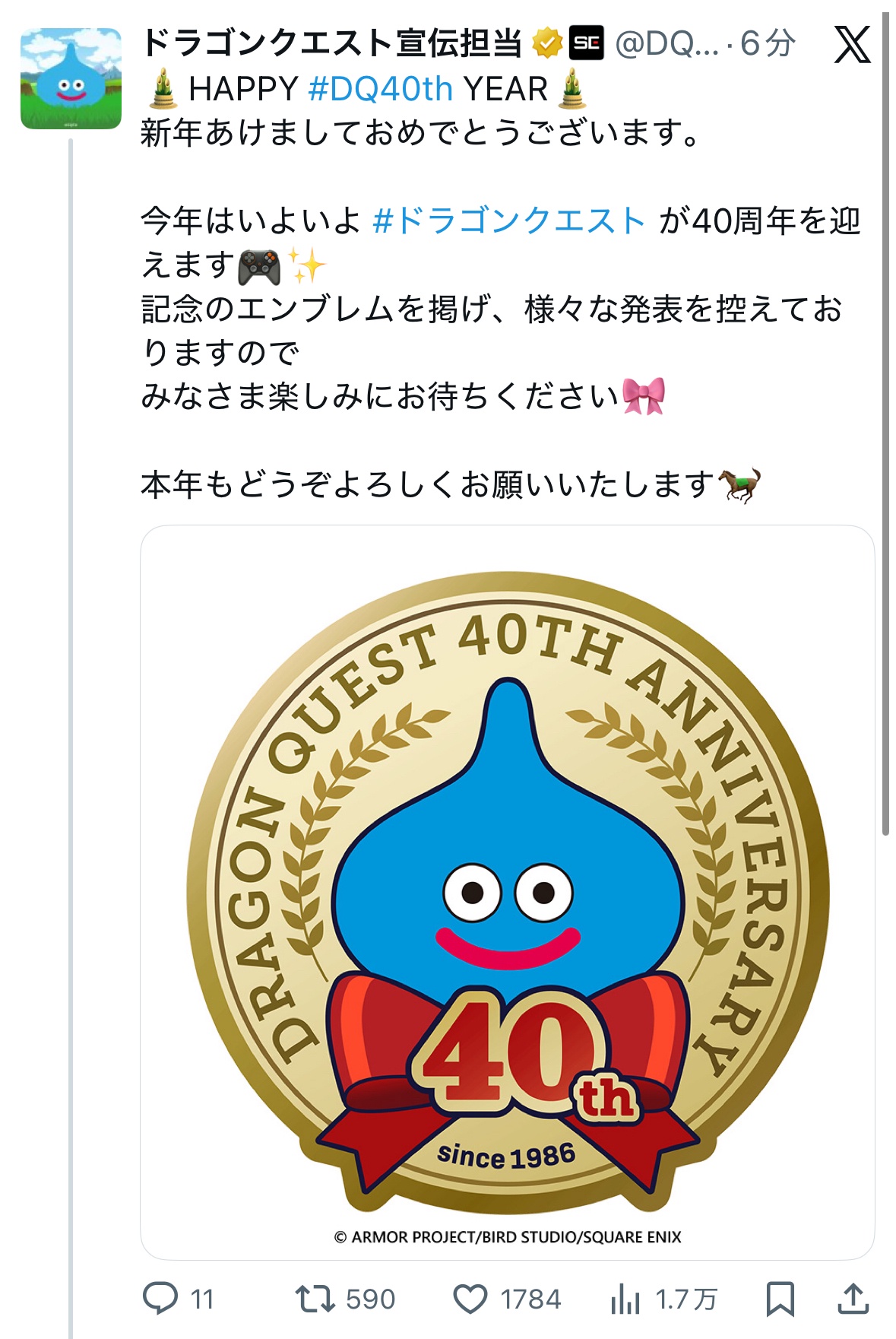 — ドラゴンクエスト宣伝担当 (@DQ_PR) December 31, 2025