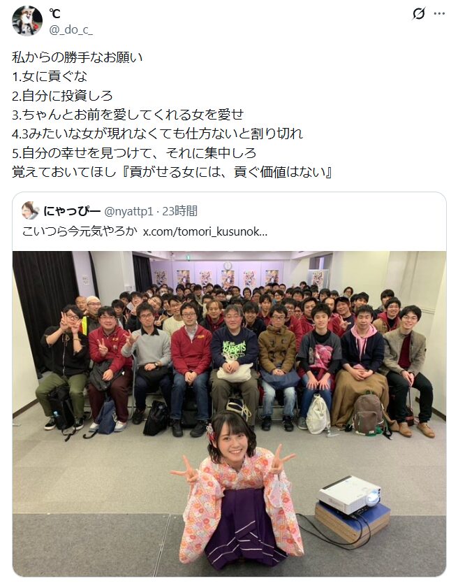 キレてる連中のポスト見てみるとワンチャンお付き合いや結婚できると本気で思い込んでる模様