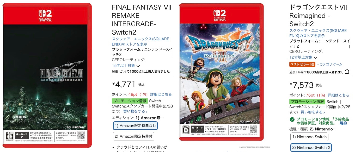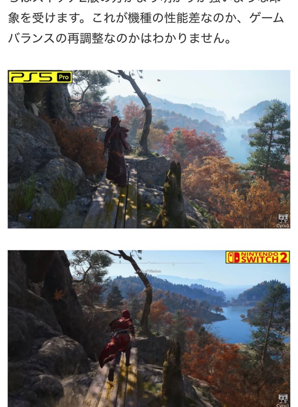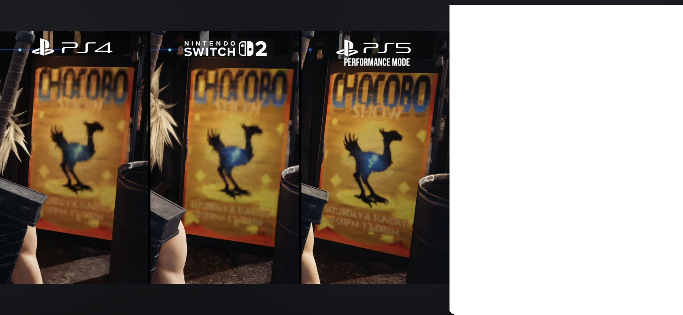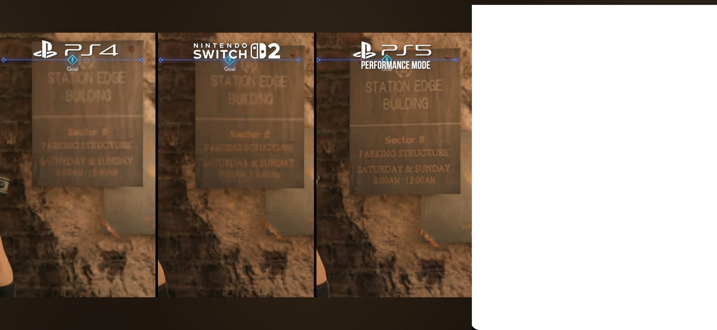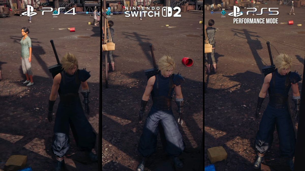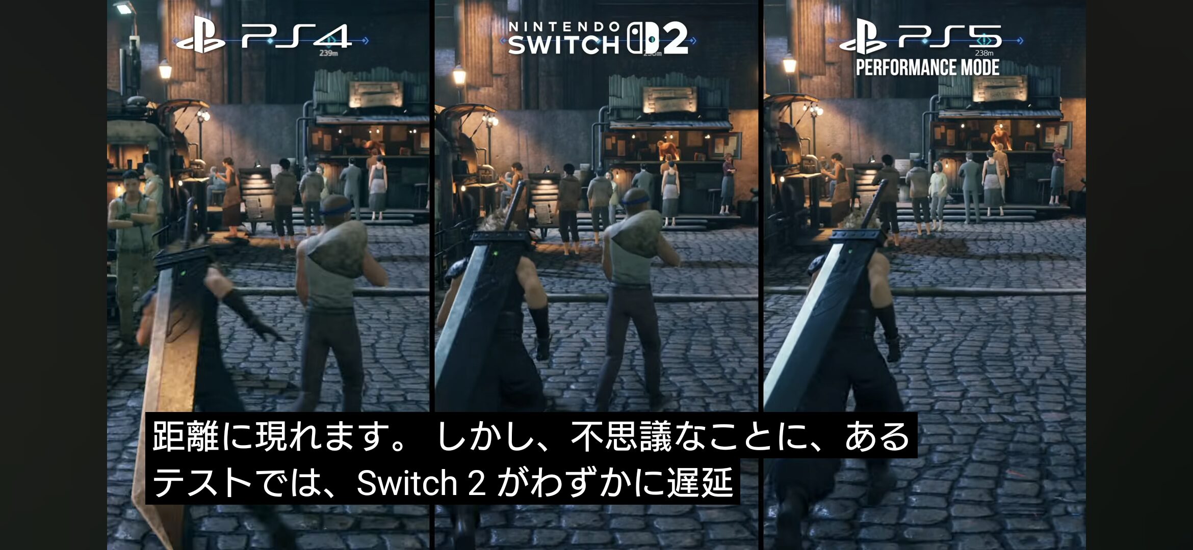 NintendoSwitch2 版の FF7R はひどい出来で、影やテクスチャの品質が全体的に悪く、アセットが飛び散るなど PS4 版のような状態です。PS5 版よりも PS4 版に近い画質で、フレームレートはほぼ 30fps ですが、所々でフレーム落ちが発生し、ロード時間は最新デバイスにしてはひどいです。