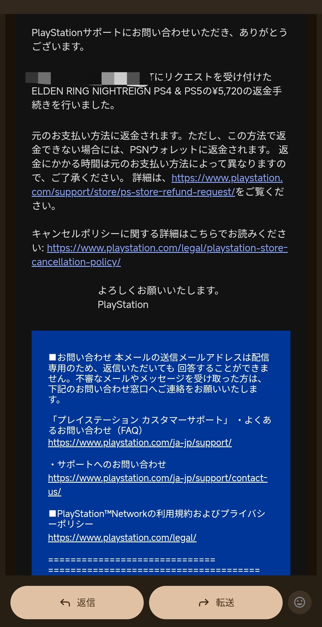 PSNは二重購入って項目あって返金してくれたのに