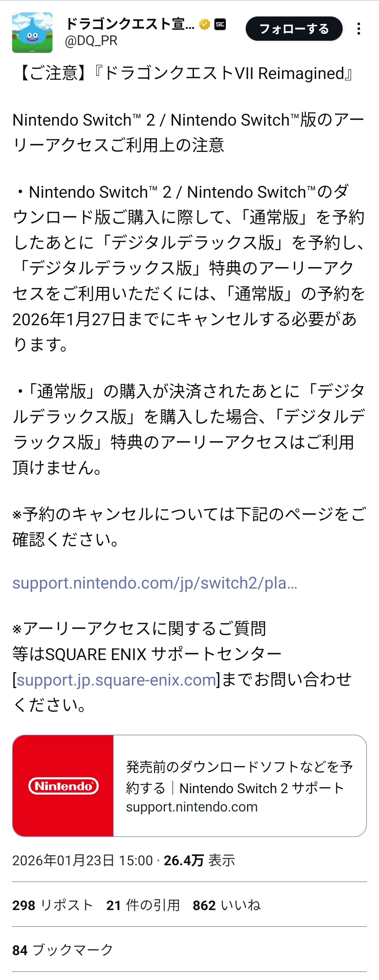 これスクエニより任天堂ストアの仕様に問題あるんじゃね ただスクエニの注意書き対応が遅過ぎたのは酷いとは思う