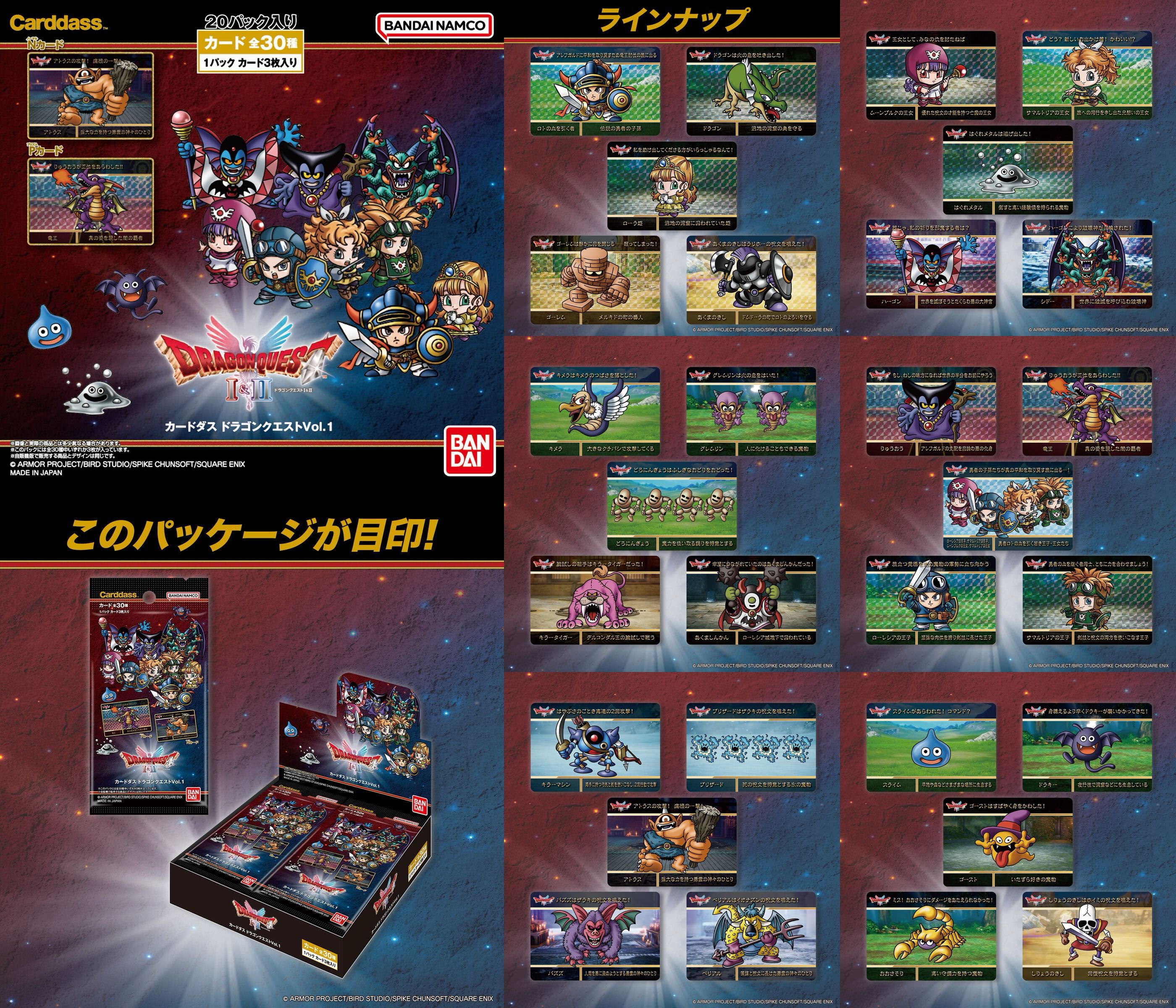 バンダイのカードダスからついにドラゴンクエストが登場。第1弾はHD-2D版ドラクエ1&2に登場するキャラクターやモンスターがラインナップ。