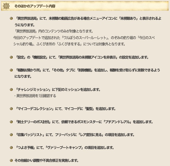 結論から言ってしまうと、ほぼアップデート内容はDQXTVで紹介されていたので、あまり気になる新情報はないかもしれません。