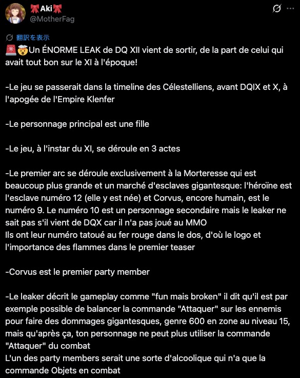 🚨🤯DQ XIIの巨大リークが飛び出した! あのXIの時は全部当たってたあの人からだよ!