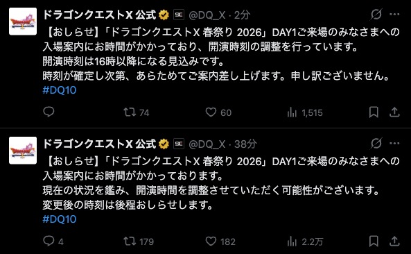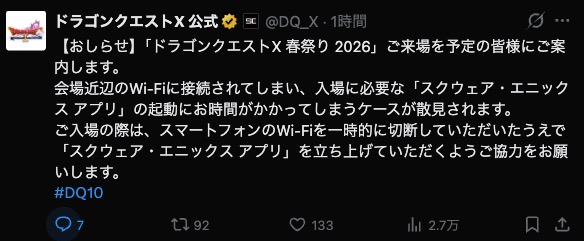 入場チケットになるスクエニアプリが立ち上がらないトラブル発生
