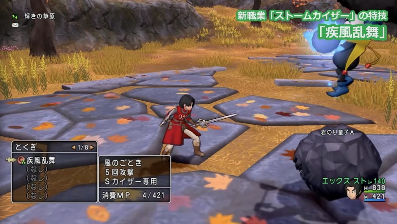 コンセプトは「風の剣士」でいくつか職業名の案を堀井さんにプレゼンしたらもっと強そうなのがいいと言われ、堀井さん命名!嵐の皇帝!