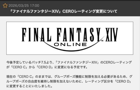 FF14はCEROをDに変更したからまだまだ引っ張っていくぜ