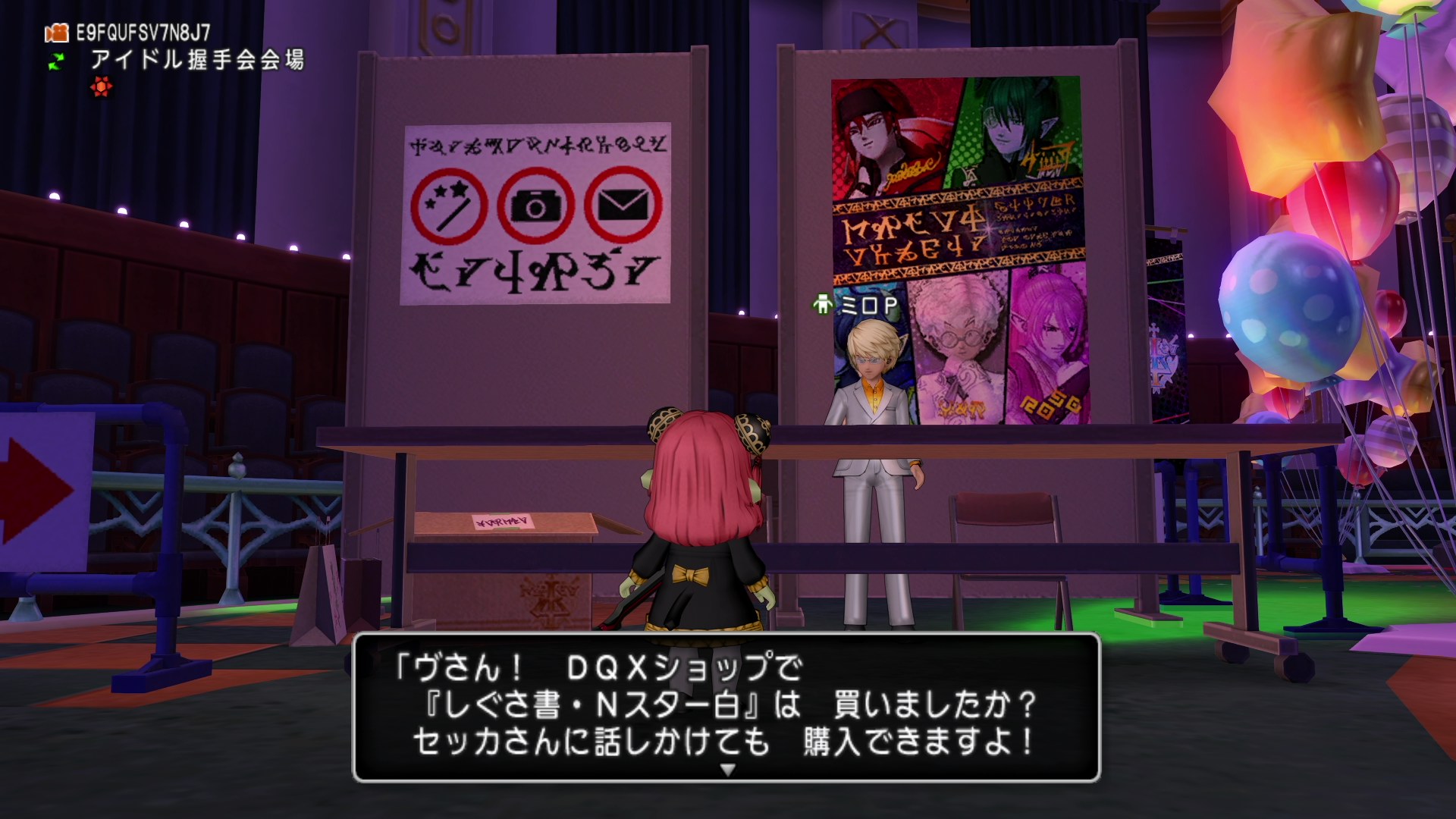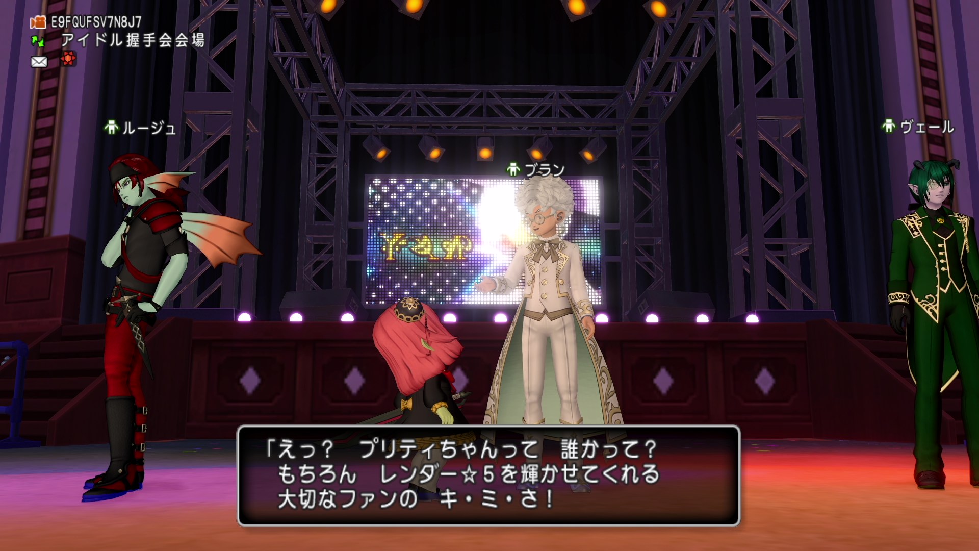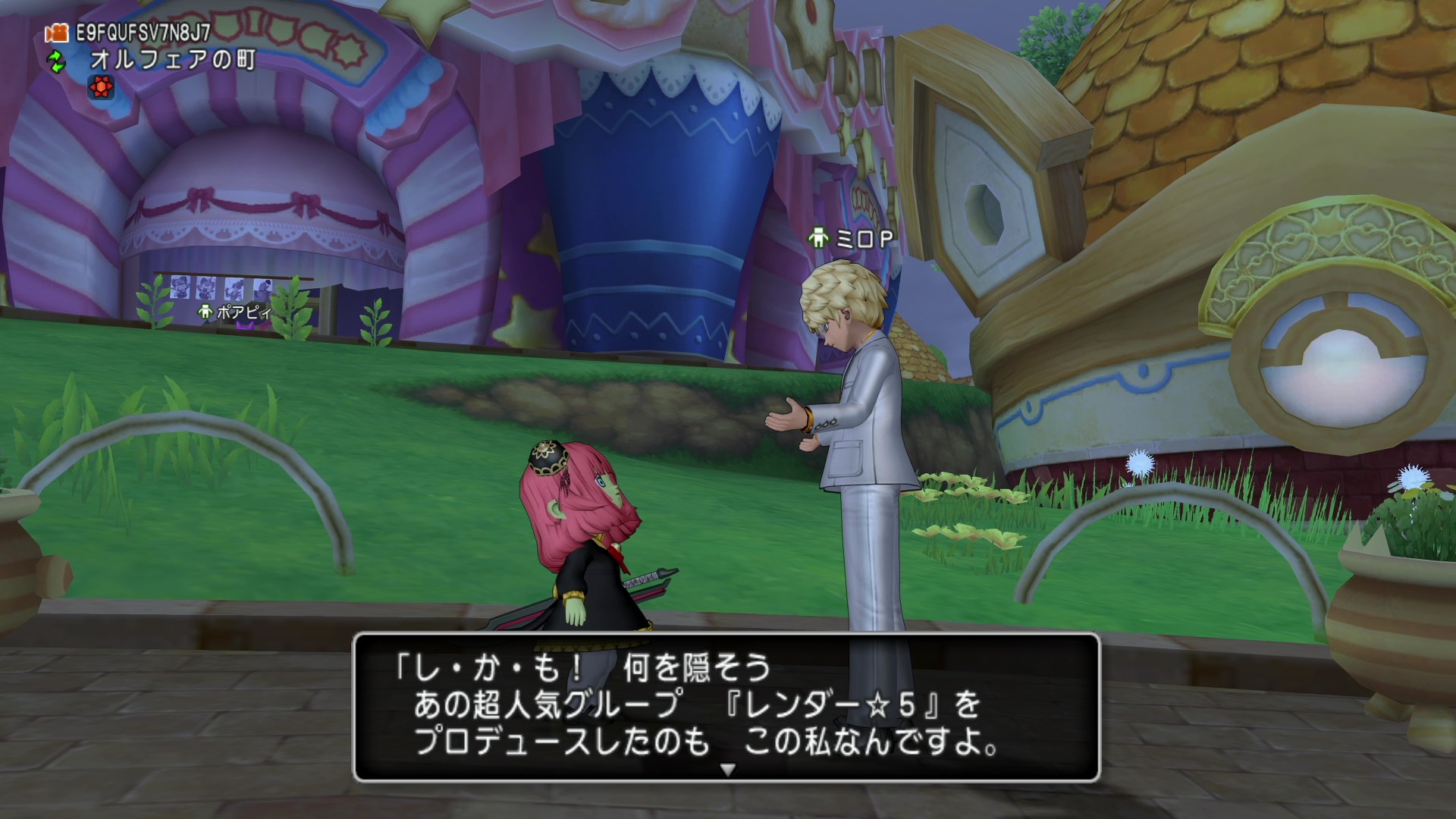 オルフェアの町にいる「ミロP」と会話でアイドル握手会会場へ行ける。