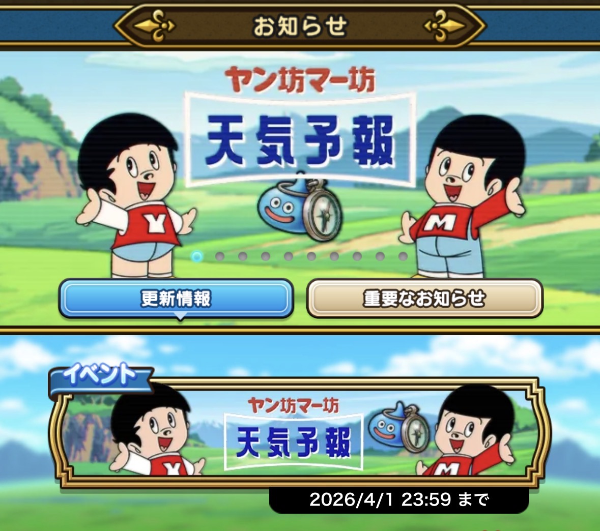 ドラクエウォークは「ヤン坊マー坊の天気予報」コラボ