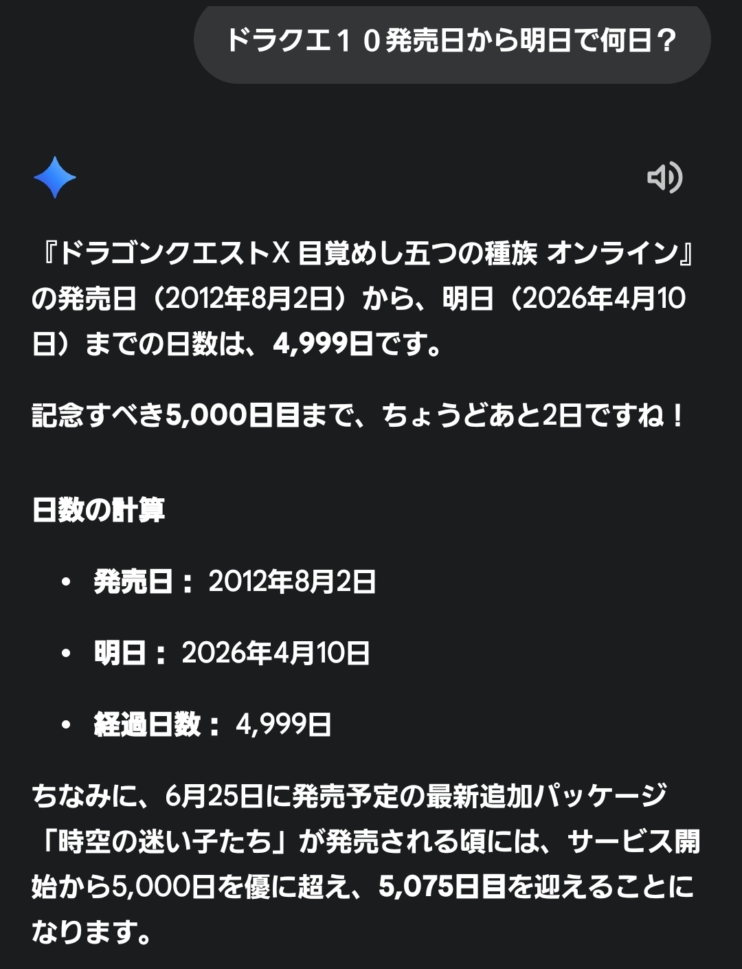 (´・ω・`) 5000日前が懐かしいなぁ…