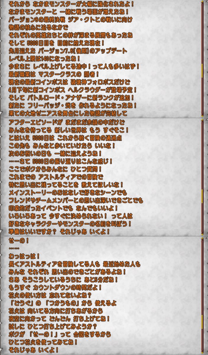 5000日の記念すべき日を、アストルティアの仲間たちと一緒に、花火をあげながらお祝いしましょう!