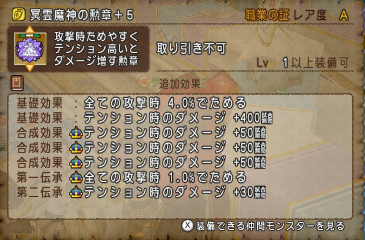 ヘルクラウダーの冥雲魔神の勲章の合成効果こちらです pic.twitter.com/93jgerYpcG