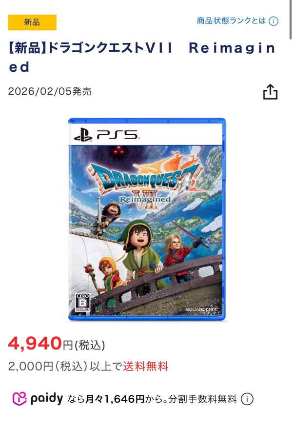 ドラゴンクエストVII Reimagined【買取価格】3000円